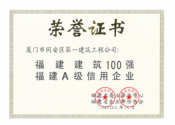 2002福建建筑100強(qiáng) 福建A級信用企業(yè)