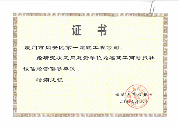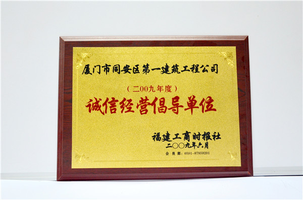 2009年度誠(chéng)信經(jīng)營(yíng)倡導(dǎo)單位