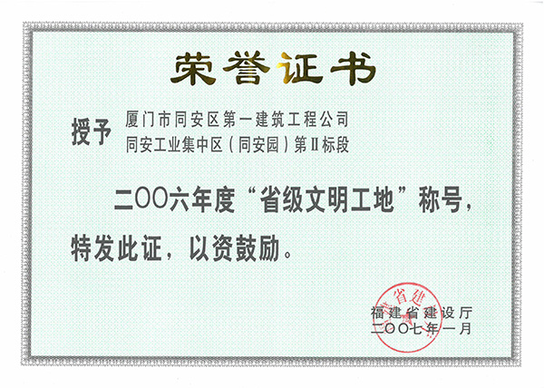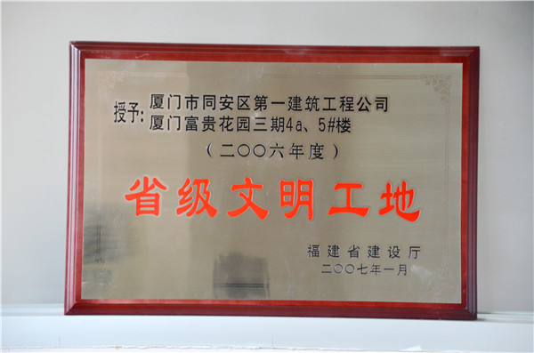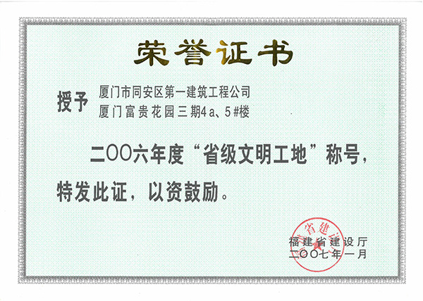 2006年度“省級文明工地”廈門富貴花園三期4a、5#樓