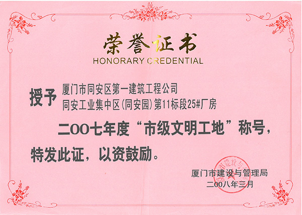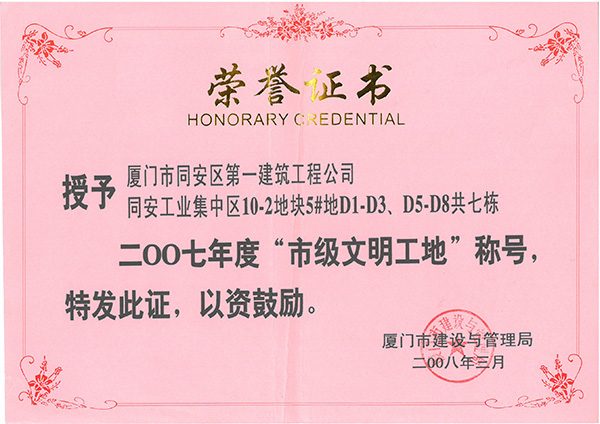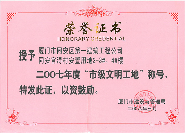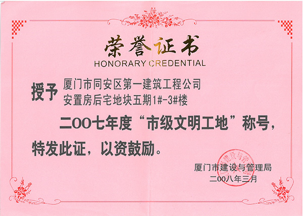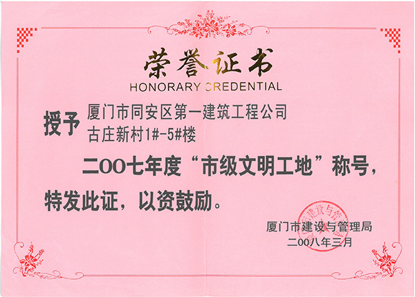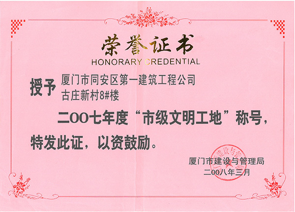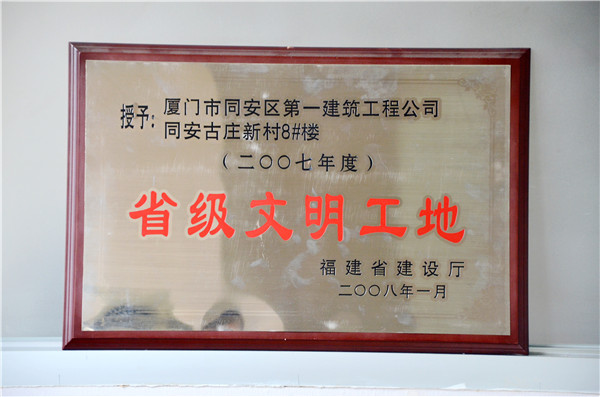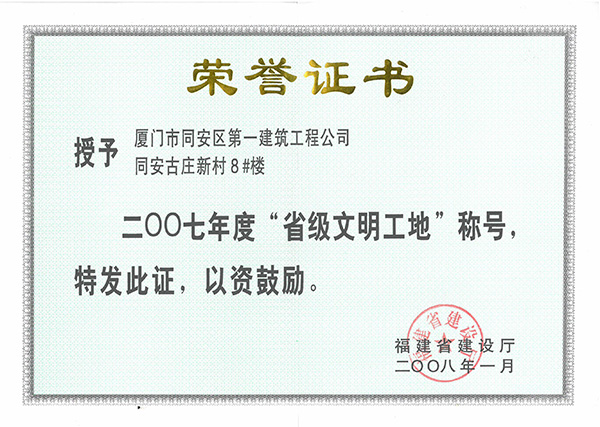 2007年度“省級(jí)文明工地”同安古莊新村8#樓