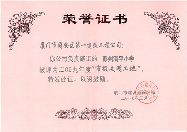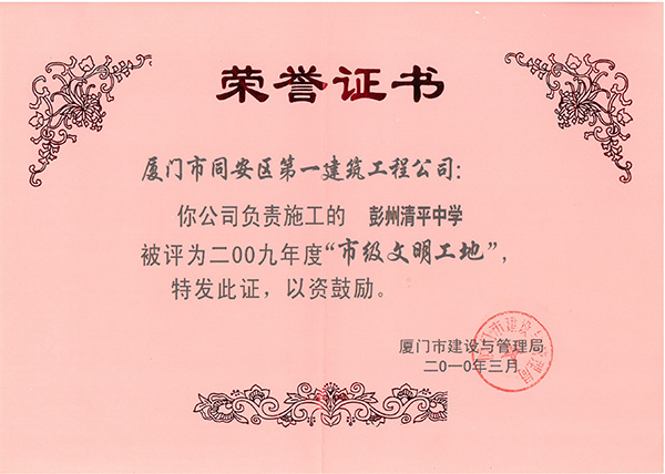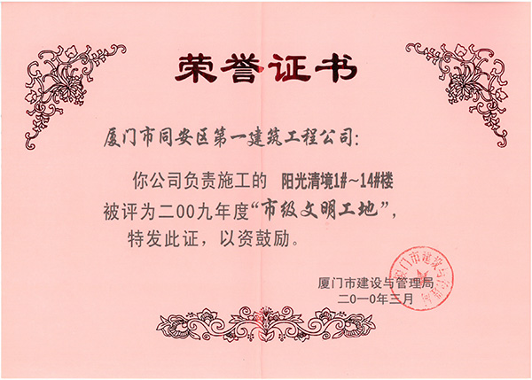 2009年度“省級文明工地”古莊新村南區(qū)13#、16#、17#樓