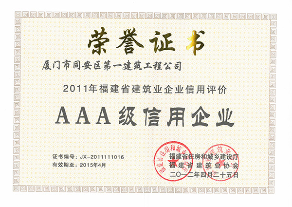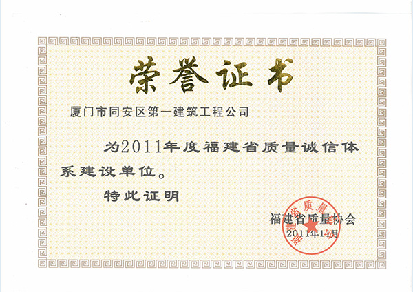 2011年度福建省質量誠信體系建設單位