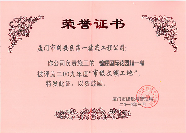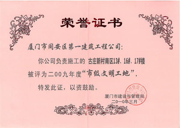 2009年度“省級文明工地”古莊新村南區(qū)13#、16#、17#樓
